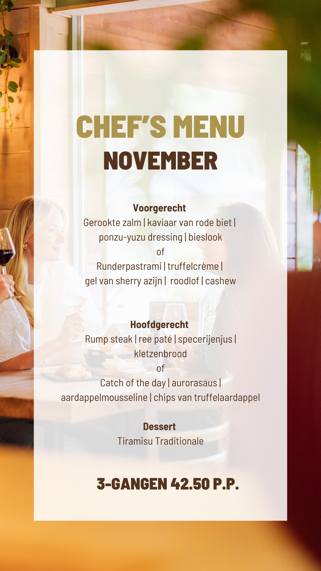 Meneer van Eijck ligt te midden van de Oisterwijkse bossen. Het restaurant kenmerkt zich door haar warme uitstraling en de sfeervolle houten inrichting. De veelzijdige kaart zal u aangenaam verrassen. Onze gerechten vallen te typeren als smaakvol, mooi gepresenteerd en Bourgondisch. Smul van onze huisgemaakte appeltaart, laat u verrassen door ons wisselend Chef’s Menu of geniet van onze beroemde Proeverij! Onze chefkok en zijn team heten u van harte welkom!